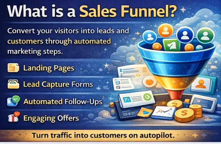 A Sales Funnel is a structured digital pathway that guides a customer from first interaction to final purchase.
