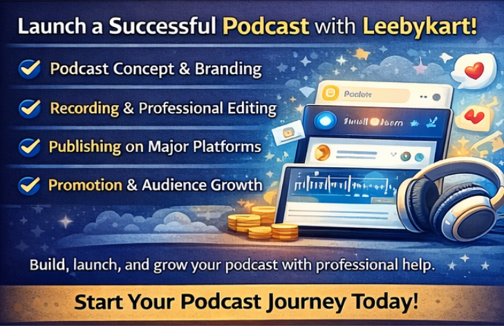 Leebykart’s podcasting solutions help you reach, influence, and convert your audience through professional audio content.